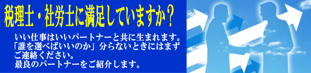 当事務所では「いい税理士がいない」「親切な社労士かどうかわからない」とお悩みの経営者の方に代わって親切な士業の方をご紹介します。もちろん完全無料です。